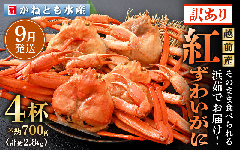 - 【訳あり】≪浜茹で≫越前産 紅ずわいがに 約700g × 4杯 食べ方しおり付【紅ズワイガニ カニ かに 蟹 姿 ボイル 冷蔵 福井県】【6月発送分】希望日指定不可 [e14-x002_06]