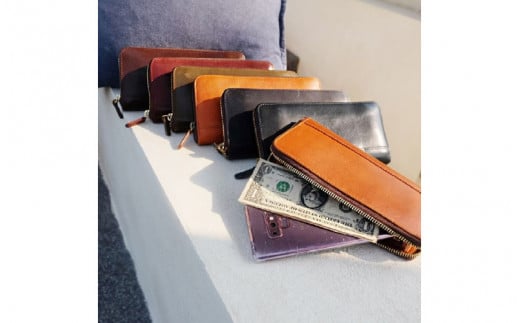 【文庫屋大関】 大容量 ぐるっとファスナーの長財布 撫子【皮革工芸品】[№5619-0852]
