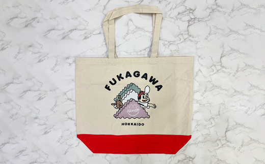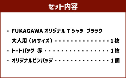 【トートバック:赤×Mサイズ】FUKAGAWAオリジナルTシャツ ブラック(大人用)・トートバック・オリジナルピンバッチセット シャツ Tシャツ 服 ピンバッチ バック トートバッグ 北海道 深川市