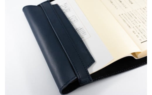 - レザーブックカバー四六判サイズ(フリーモデル)【ネイビー】