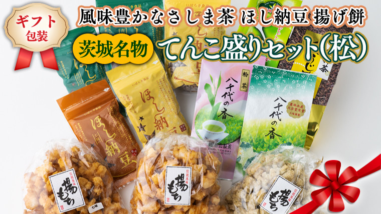 - <ギフト>【贅沢三昧】 風味豊かなさしま茶 ほし納豆 揚げ餅 てんこ盛りセット(松)[AE040ya]