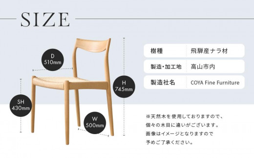 - 【COYA】Sail ダイニングチェア (ペーパーコード座面/アームなし)| チェア 椅子 イス いす 家具 ダイニング リビング ナラ なら材 木製 飛騨高山 COYA Fine Furniture LB009