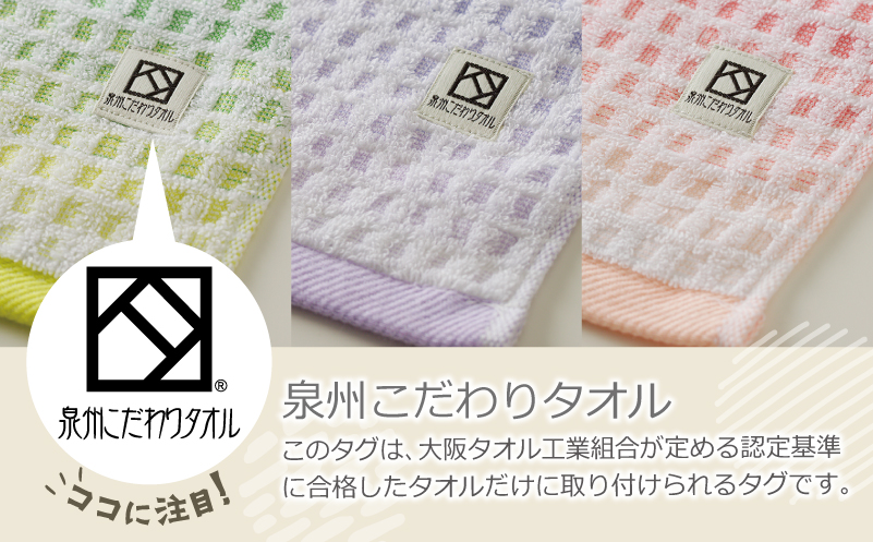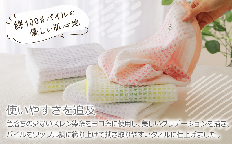 グラデーションワッフル フェイスタオル 6枚(ピンク/グリーン/パープル)泉州こだわりタオル【泉州タオル 国産 吸水 普段使い シンプル 日用品】 010B1558