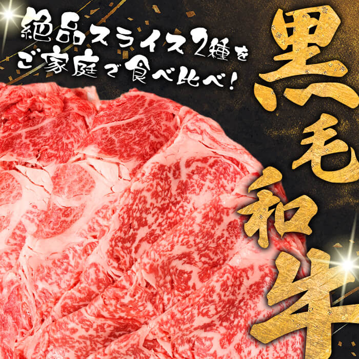 - 【ふるさと納税】【2025年2月発送予定】【寄附者応援企画!】すき焼きに!鹿児島県産 黒毛和牛 スライス 2種部位セット(ロース&カタ)<計700g> A4等級以上! 国産 肉 牛肉 霜降りしゃぶしゃぶ 牛しゃぶ 冷凍 ロース 肩ロース 食べ比べ セット【サンキョーミート】a5-299-02