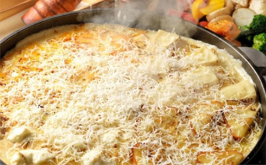 - 4種類のチーズをトッピングした焼きチーズフォンデュ