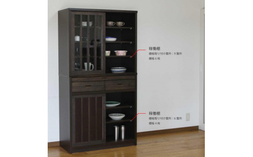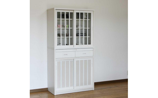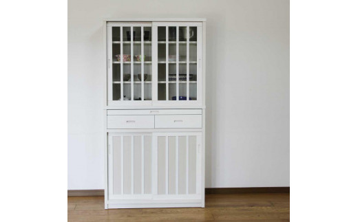 - 90幅 カップボード 鎌倉 食器棚 キッチンボード キッチン収納 カップボード ダイニングボード カウンター付き 桐 和風モダン 90cm かまくら 和モダン シンプル ホワイト色