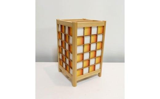 - 角行灯「匠」 Mサイズ 楮和紙 無地(晒) 橙色 市松模様(格子組子)