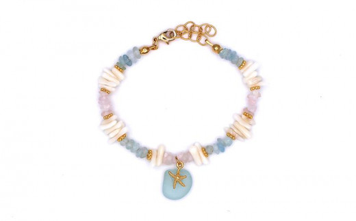 【ブレスレット&イヤリング】Lサイズ|サンゴとシーグラスのアクセサリーセット