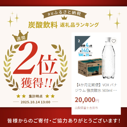 - 【4か月定期便】VOX バナジウム 強炭酸水 500ml 35本 ラベルレス【富士吉田市限定カートン】