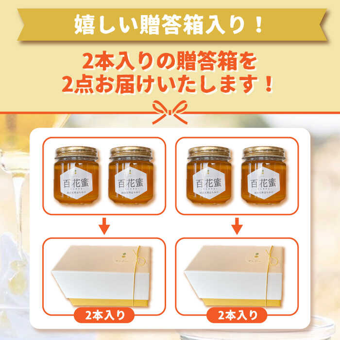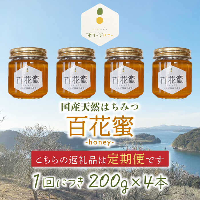 - 【ふるさと納税】【3回定期便】百花蜜 国産天然 はちみつ 200g × 4本〈嬉しい贈答箱入り!〉【オリーブハニー】[OCG007] / 清水養蜂場 ハニー トースト 純粋 蜂蜜 オリーブハニー カフェ 長崎県 みかん蜜 小分け 瓶 ギフト プレゼント 手土産 はちみつレモン 砂糖 ハチミツ