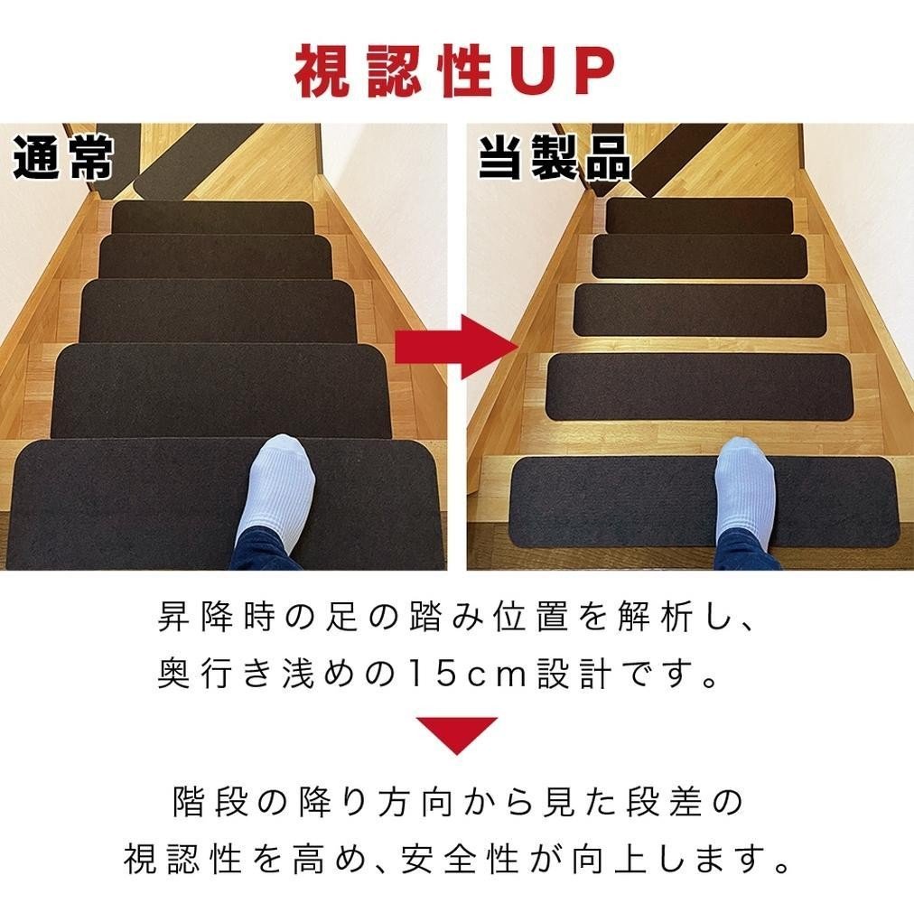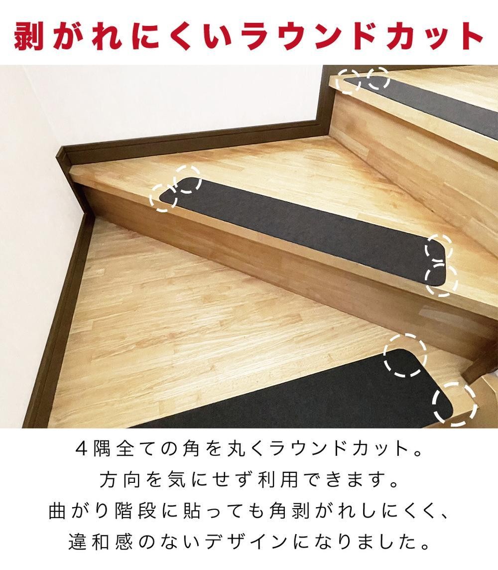 - 薄型吸着 ラウンド階段マット 約70cm×15cm 15枚入り ベージュ 吸着 階段マット 浅め 階段 ラウンド型 滑り止め マット 角丸 カーペット 洗える BTS104385501