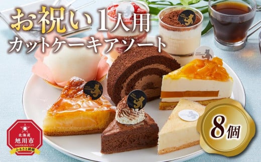 - お祝い1人用カットケーキ アソート8個 【 ケーキ 菓子 お菓子 おかし スイーツ デザート 洋菓子 旭川 北海道 人気 食品 】_04267