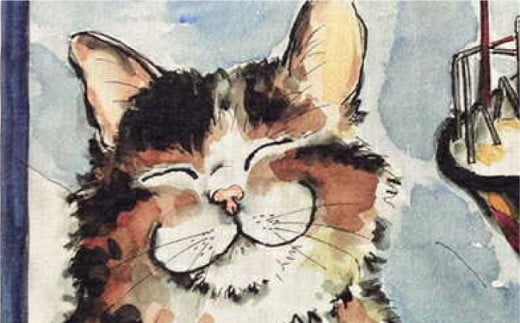ネコのいる風景 ポンポン船を案内してくれるネコー浦賀の渡し ハンカチーフ 約53cm×約53cm ハンカチ ねこ ネコ 猫 栗原君古 叶神社 横須賀 神奈川【有限会社カヤマ】 [AKAR002]