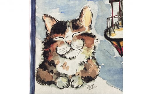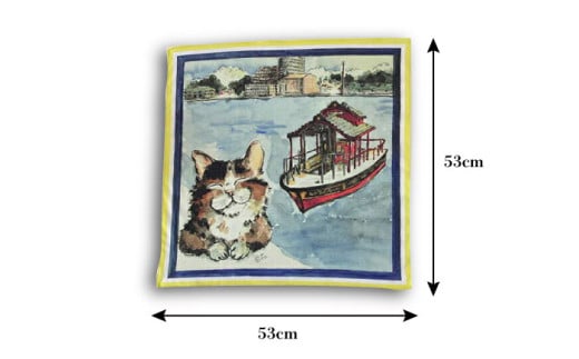 - ネコのいる風景 ポンポン船を案内してくれるネコー浦賀の渡し ハンカチーフ 約53cm×約53cm ハンカチ ねこ ネコ 猫 栗原君古 叶神社 横須賀 神奈川【有限会社カヤマ】 [AKAR002]