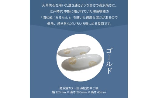 S026-055_天草 高浜焼カヌー皿 中2枚 計2枚入りセット(ゴールド)