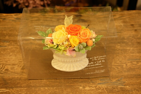 - 空間を華やかに プリザーブドフラワー「ポットアレンジ」 イエロー&オレンジ系 [№5312-7153]0575