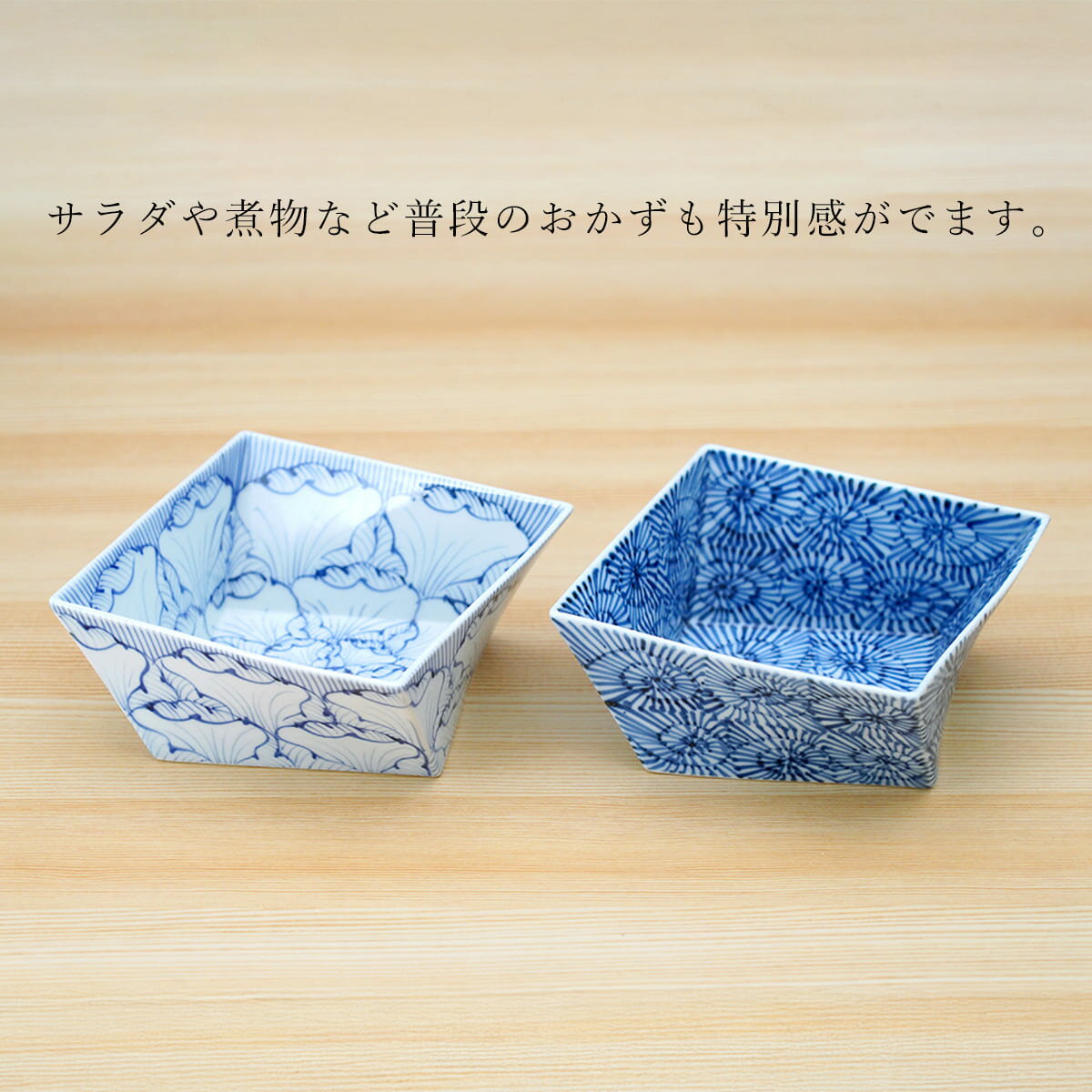 - 【ふるさと納税】有田焼 染付角捻り鉢花弁紋と蛸唐草2点セット 鉢 盛皿 そうた窯おもてなし 正月 有田焼 和食器 うつわ 器 染付 捻り鉢 多用鉢 ボウル おしゃれな皿 伝統 手描き 鉢2個セット 盛皿2個セット 電子レンジ 食洗器 5万円 50000円 A50-71