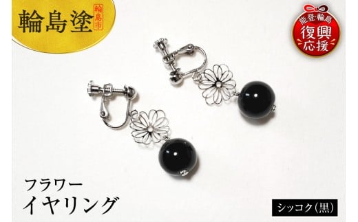 - 輪島うるし塗 イヤリング フラワー シッコク(黒)