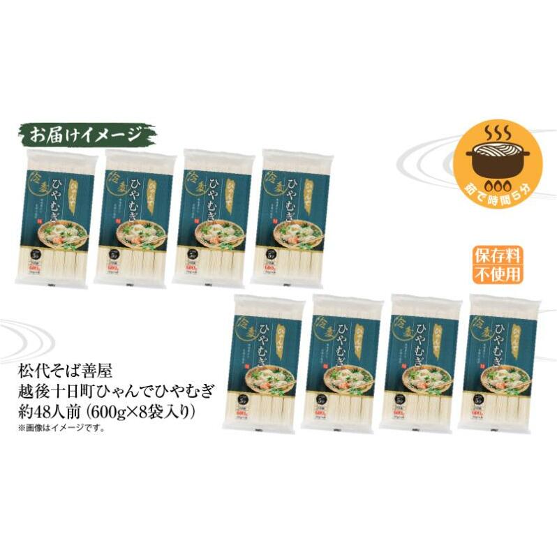 ひゃんで ひやむぎ 600g 8袋 約48人前 冷や麦 ヒヤムギ 冷麦 干しひやむぎ ファミリー 麺 乾めん 自家用 お中元 お歳暮 贈り物 お取り寄せ 備蓄 保存 便利 ギフト 越後 魚沼 松代そば善屋 新潟県 十日町市