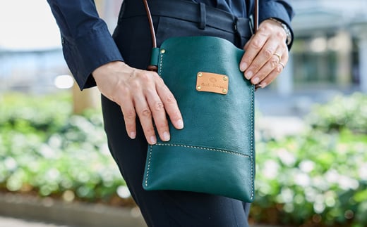 <ハンドメイド>やわら革サコッシュ(グリーン)【1474555】