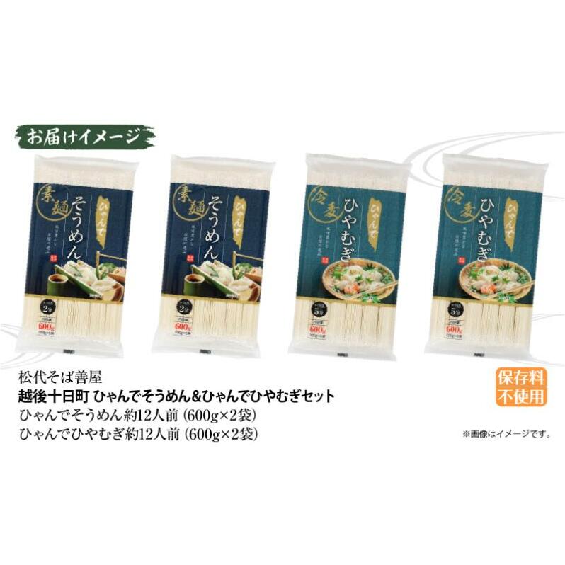 ひゃんで そうめん ひやむぎ 600g 各2袋 計4袋 約24人前 素麺 ソーメン 冷麦 ヒヤムギ 麺 乾めん 自家用 お中元 お歳暮 贈り物 お取り寄せ 備蓄 保存 便利 ギフト 越後 魚沼 松代そば善屋 新潟県 十日町市