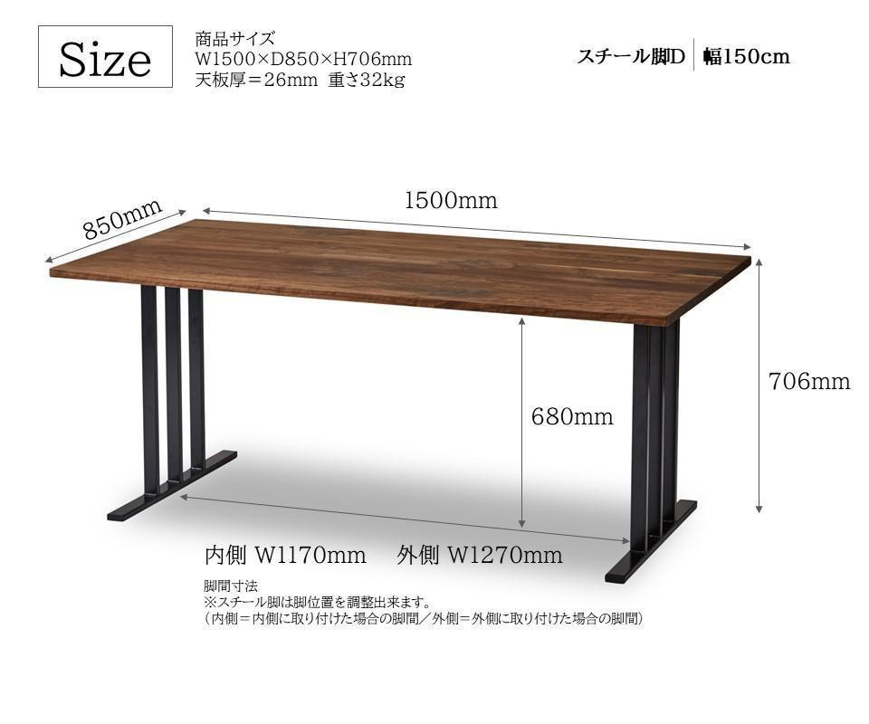 【開梱設置込み】ダイニングテーブル 幅150cm スチールD脚 免疫家具 国産 家具 大川【表面材:ウォールナット・ホワイトオーク/天板の縁:角面・船底面からお選びください】