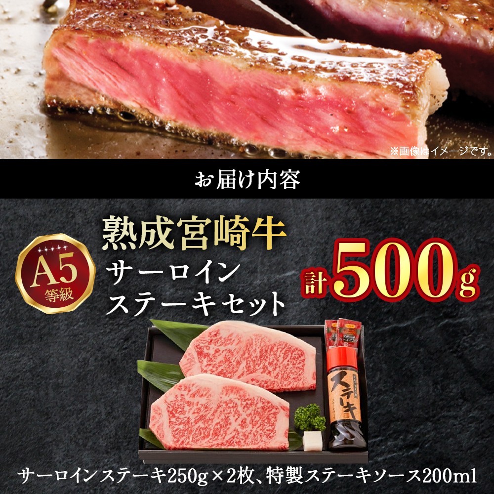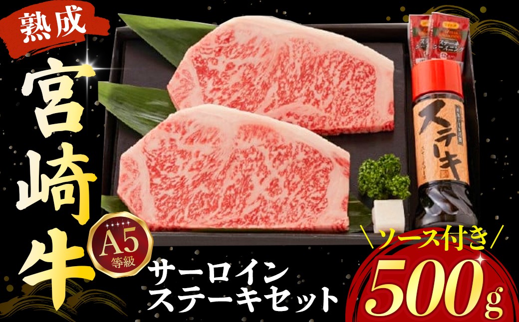 - 【運用開始記念!】熟成宮崎牛A5等級サーロインステーキセット 500g オリジナルソース付き(牛肉 お肉 ブランド牛 黒毛和牛 ステーキ サーロイン)