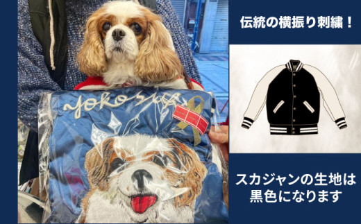 【2Lサイズ】【数量限定】 横振り刺繍スカジャン ペット黒 横須賀 衣類 ジャケット 服飾 ペット 刺繍 オリジナル オーダー ファッション 【ドブ板コーバスタジオ】 [AKAI013-4]