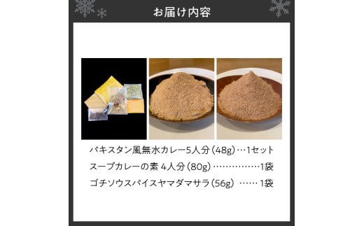 - 札幌「8CURRY」監修パキスタン風無水カレーキット 5人分(48g)×1セット&スープカレーの素 1袋(80g)&ゴチソウスパイスヤマダマサラ 1袋(56g)