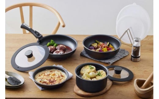 - フライパンセット ダイヤモンドコートパン9点セット IH・ガス火対応 NTF-SEI9 ブラックメタリック