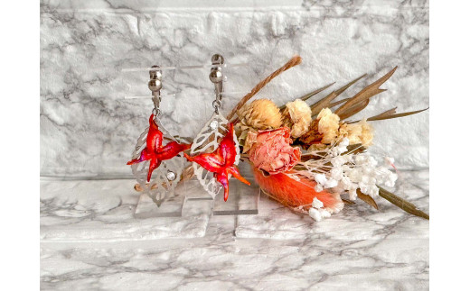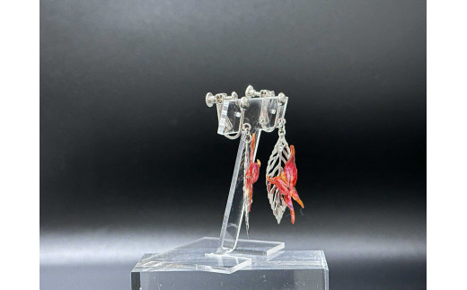 レッド蝶 木の葉のイヤリング 小