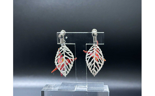- レッド蝶 木の葉のイヤリング 小