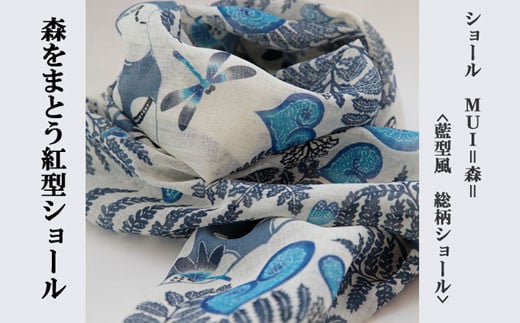 MUI ー森をまとう紅型ショールー<藍型風 総柄>
