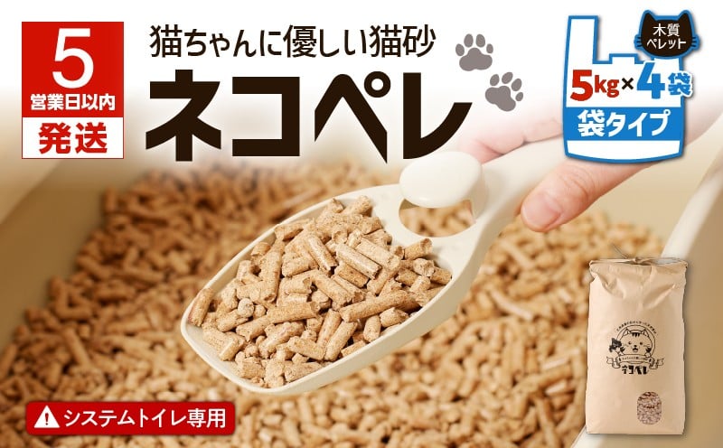 【猫砂 ネコペレ 5kg×4袋】木質ペレット 袋タイプ T008-005