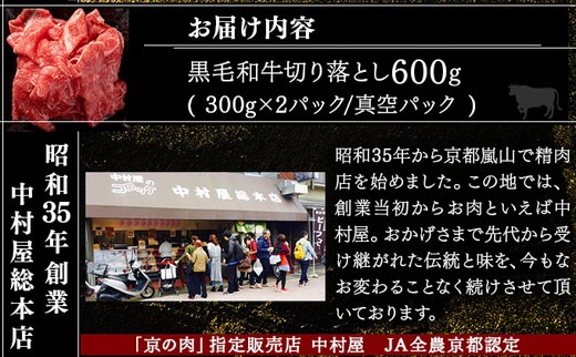 - 京都嵐山中村屋総本店厳選 国産黒毛和牛 切り落とし 600g(300g×2パック)≪訳あり 業務用 和牛 牛肉 真空冷凍 小分け≫