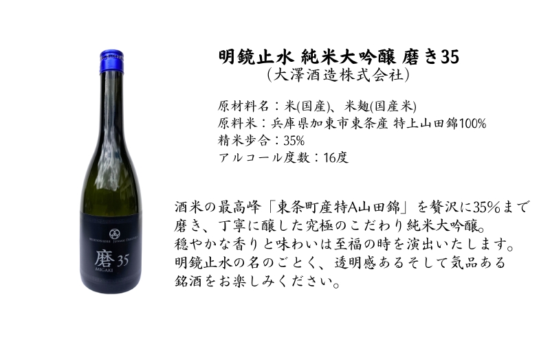 - 明鏡止水 純米大吟醸 磨き35 720ml×2本 化粧箱入 大澤酒造 加東市特A地区 東条産山田錦使用 [ フロンティア東条 日本酒 酒 お酒 四合瓶 贈答品 辛口 ] 純米吟醸酒