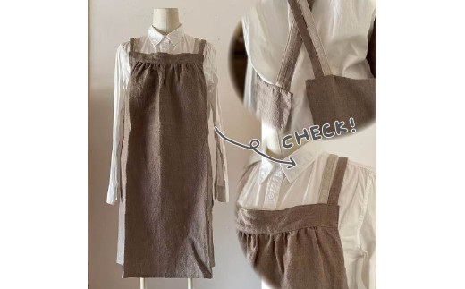 エプロン 〈ギャザー エプロン〉 Fu-ra 【カラー:モカ】おしゃれエプロン リネンエプロン 奈良県 奈良市 なら 30-086