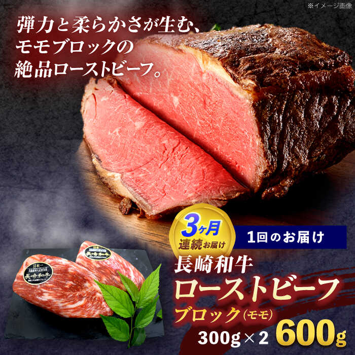 - 【ふるさと納税】【3回定期便】長崎和牛 モモブロック肉(ローストビーフ用) 約600g(300g×2)【株式会社 黒牛】[OCE030]