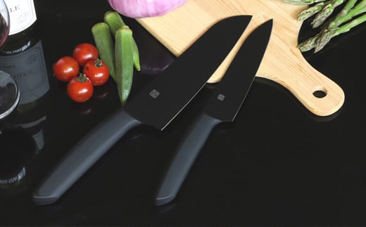 - H10-179 【濃州正宗作 オールブラック三徳包丁】 引き締まる重厚感あるオールブラックカラー ヒップアップハンドルで押し切りしやすい【7営業日発送】