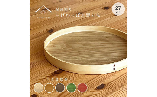 - 紀州塗り 曲げわっぱ 丸盆 ライトブラウン 27cm 9寸 お盆 トレー トレイ カワイイ 和風 お茶盆 プレート