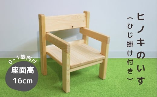 N2 【国産ヒノキ・無垢の木】ヒノキのいす(ひじ掛けあり)_0~1歳児向け