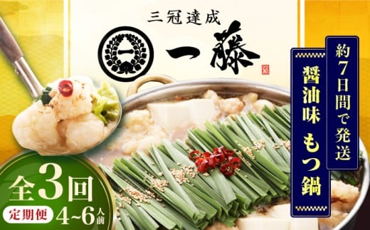 - 【3回定期便】【もつ鍋一藤】 国産黒毛和牛のもつ鍋醤油味 4~6人前 広川町 / Smallcompany株式会社 [AFCB014]