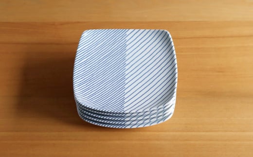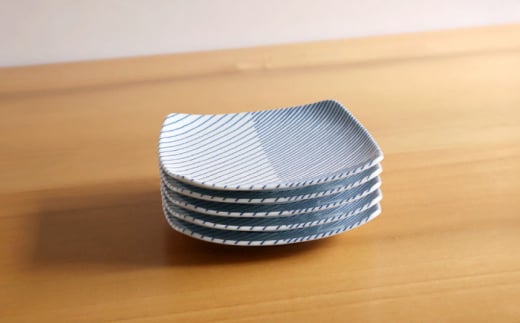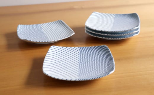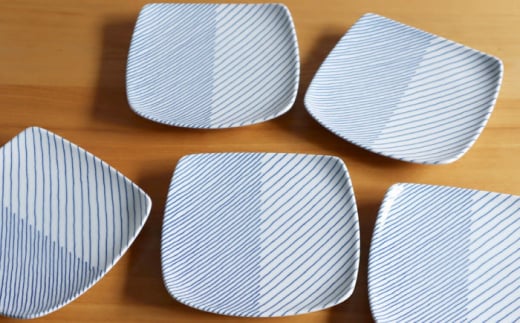 - 【白山陶器】【グッドデザイン賞】重ね縞 反角中皿 5枚セット【波佐見焼】 [TA163]