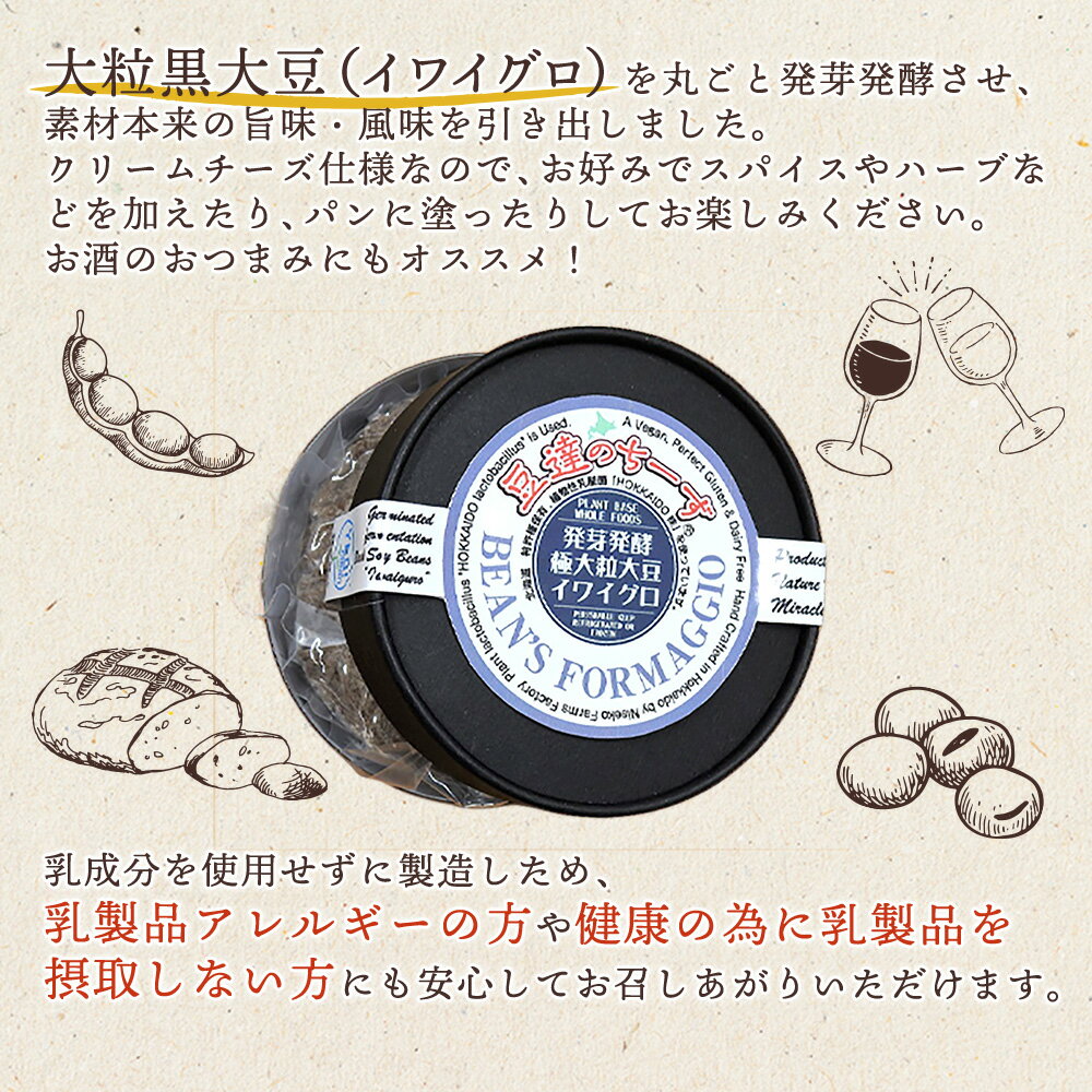 - 【ふるさと納税】豆達のチーズ 発芽発酵大粒黒大豆(イワイグロ)(小麦・乳・食品添加物無し)【植物性乳酸菌[Hokkaido株使用]・北海道クリーン農法”Yesclean”加工品部門認定品】【3111301】