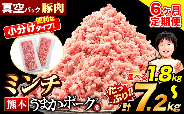 - 【6ヶ月定期便】豚肉 ミンチ 1.8kg 3.6kg 5.4kg 7.2kg 豚 小分け 訳あり 訳有 ひき肉 うまかポーク 傷 規格外 ぶた肉 ぶた 真空パック 簡易包装 冷凍 《お申込み月の翌月から出荷開始》---oz_fuptei_24_54000_m_1800g_mo6---