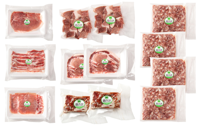 北海道十勝の放牧豚”遊ぶた”バラエティー2.68kgセット お肉 豚肉 ロース バラ肉 ブロック モモ肉 粗びき 詰め合わせ