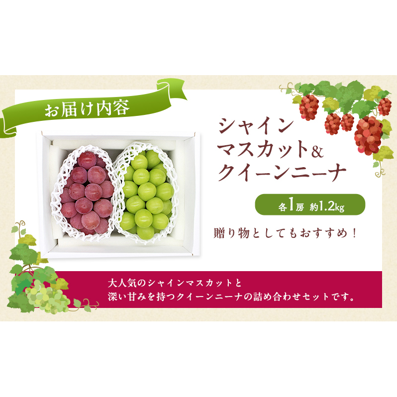- ぶどう 2025年 先行予約 シャインマスカット&クイーンニーナ 各1房 約1.2kg ブドウ 葡萄 岡山県産 国産 フルーツ 果物 直送!せとうちバスケット