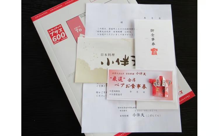 創業大正九年 日本料理小伴天“厳選”会席ペアチケット H007-106