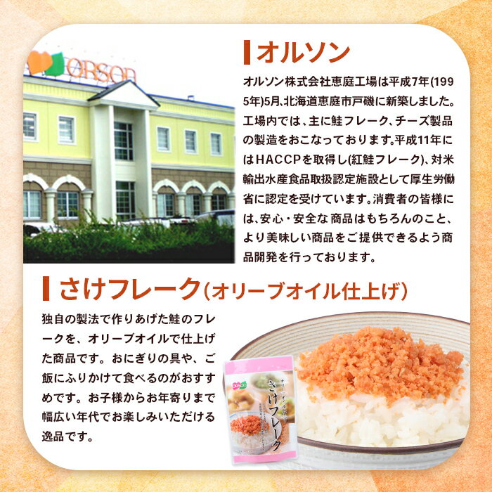 - 【ふるさと納税】オルソン さけフレーク(オリーブオイル仕上) 1・4・12袋 定期便(1~12回) 選べる内容量&回数 | 定期便 オルソン おむすび おにぎり ふりかけ ご飯のお供 お取り寄せ 北海道 恵庭市 恵庭 【040011】