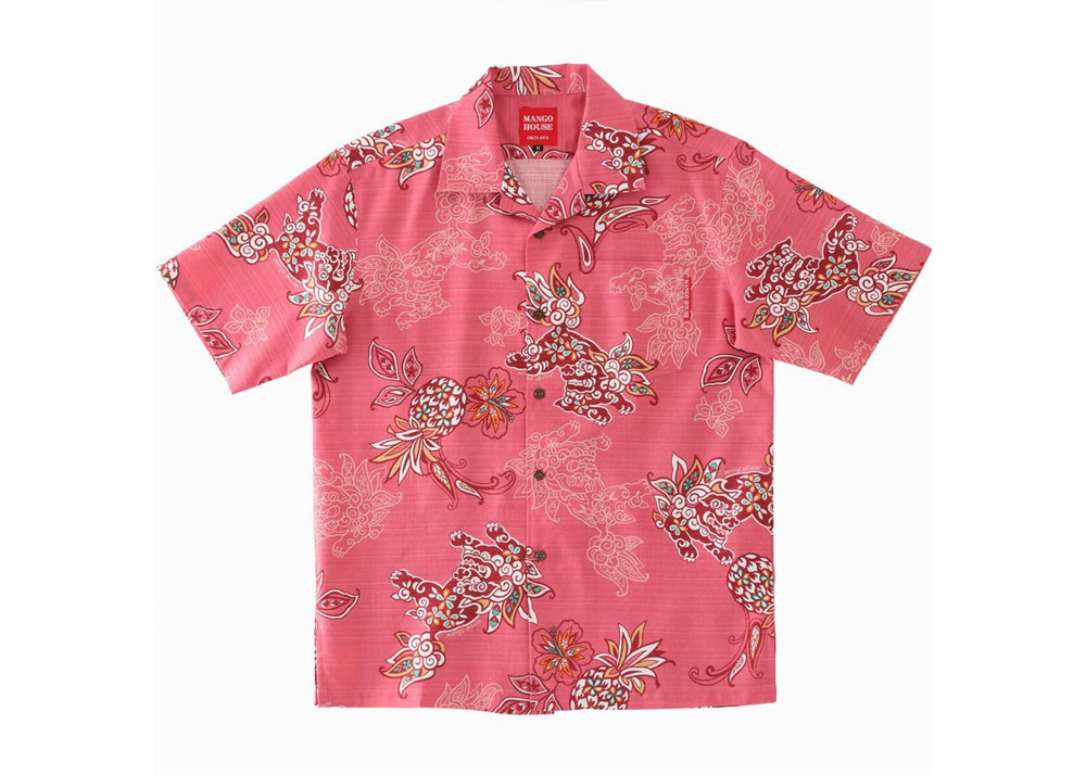 【かりゆしウェア】メンズ いちゃりばシーサーパインMサイズ×ピンク